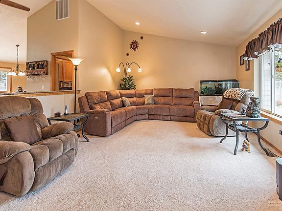 Beautiful immaculate custom home on 2.4 private acres. Open and bright, efficient kitchen with newer stainless appliances, fridge included. Quartz countertops, hardwood & carpet flooring. 2 masters, vaults, plant shelves. Heat pump with AC, ceiling fans, all this plus french doors that access to a stamped concrete deck with enclosed hot tub. Detached sunroom, covered stone accents BBQ area, screened gazebo, three water features, two west coast metal garages, 24x31 10 ft. doors. 20x21 8 ft. doors, 22x26 RV carport, extra storage shed is approx. 10x8. Covered dog kennel, automatic sprinklers, fenced with chain length fence. This property you do not want to miss, perfect for all the toys. This is THE property!