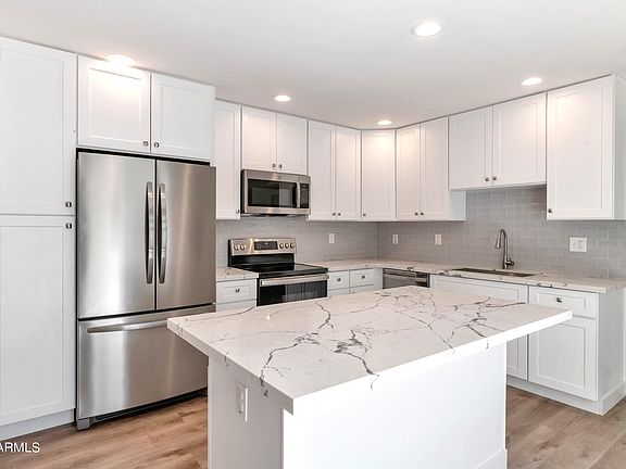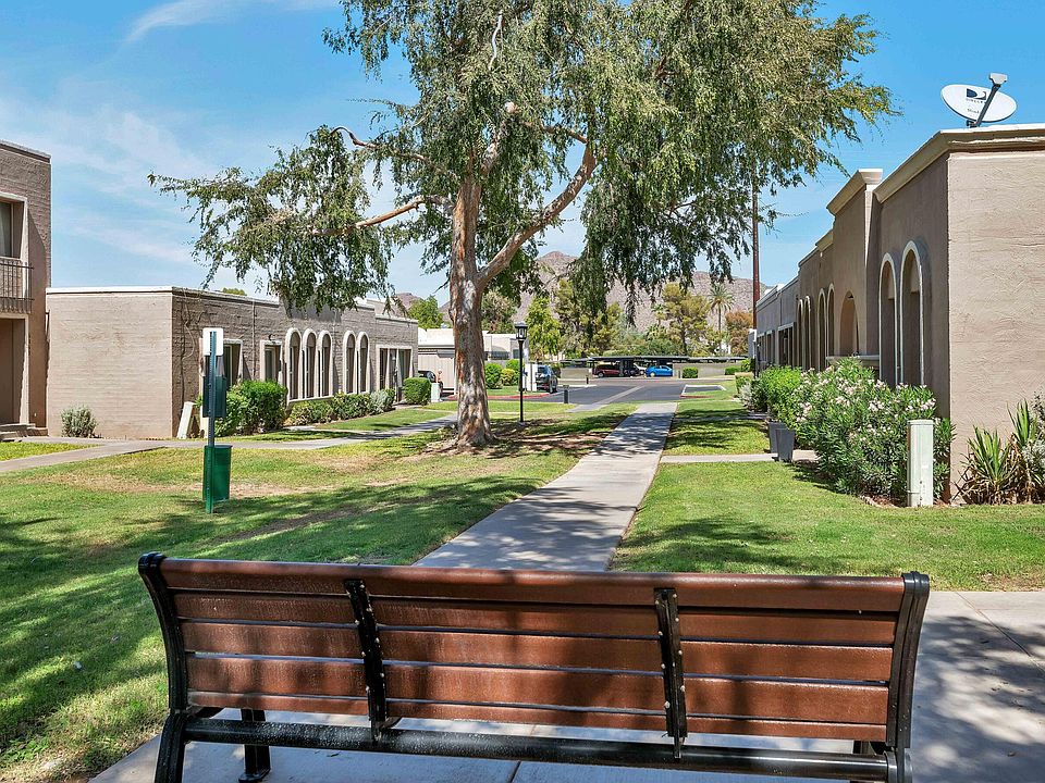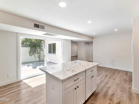 ** BEAUTIFULLY RENOVATED SINGLE STORY TOWNHOUSE** PRIVATE end unit at the back of the community that is not near/on Thomas. The GORGEOUS KITCHEN features a large Island with counter seating, bright white Shaker Cabinets, QUARTZ COUNTERTOPS & SS Appliances. The home also features updated flooring, updated dual pane vinyl windows, patio door and front door. All interior doors and spaces have been updated! The LARGE PRIMARY SUITE features 3 closets (one walk in) and a gorgeous ensuite bathroom with double vanities and walk in shower. This home is situated in the perfect Arcadia/S. Scottsdale location! Single level units do not come up often in this complex, do not miss out on this one!