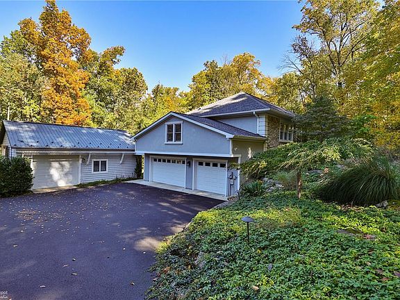 STUNNING custom stone front raised ranch situated on 1.25 acres of tranquility in East Penn SD. Main floor features spacious foyer w/ oak flrs leading to eat in kit w/ granite countertops, stainless appliances, pot filler, tiled back splash w/ intricate detail, 2 sinks, an abundance of natural light, dining area w/ sliders to 2nd flr deck overlooking your backyard oasis. LR boasts white maple hw flrs, tray ceiling, recessed lighting, french drs leading to main BA w/ tiled flrs, 2 BRs crown molding & hw flrs. MBR suite featuring two walk in closets, laundry area, custom master BA with spacious shower italian tile and soaking tub, built ins, electronic shades. LL presents FR w/ laminate flrs, built in flat screen, propane stove, wet bar, custom black walnut countertop on bar. Sliders to the rear paver patio overlooking the water feature & waterfall. Built in oversized 3 car gar & det 36 x 24 heated pole barn gar & wrkshp. This home MUST be seen to appreciate all of the custom upgrades!