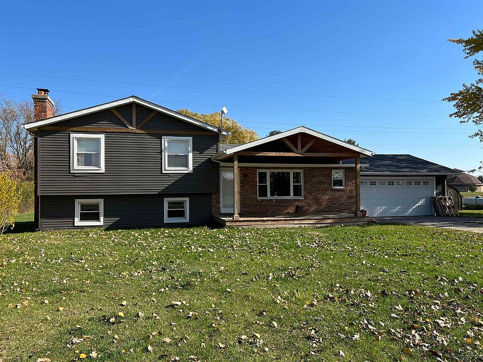 Remodeled tri level home situated on 2.68 acres in the country. 3/4 bedrooms, 1-1/2 baths, beautiful kitchen with appliances, living room, step down family room with natural fireplace, 2 car attached garage, covered front porch and a storage garage. This property is a must see!