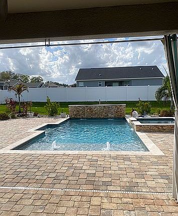 Professional photos coming soon! Welcome home to this beautiful 4 bedroom 3 bath POOL home located in a gated community in south Lakeland. The home has wood look vinyl plank flooring throughout. As you enter the home, you will love the wide open floor plan. The spacious kitchen opens up to the family and dining room. The kitchen features a large island along with plenty of cabinets and counter space with quartz counters and custom backsplash. The pantry is supersized! Bedrooms 2 and 3 have a jack and jill bathroom with dual sinks. The guest bathroom features a walk in shower with custom tile. The master bedroom is spacious and the master bath features dual sinks, a walk in shower and a stand alone tub. There is also a large walk in closet. Now, exit through the french doors in the family room and enter a backyard oasis. The backyard is fully fenced. The saltwater pool is heated along with 3 waterfalls and a spa. Have lots of fun parties around the tiki bar. This home is absolutely gorgeous and only 2 years old. Conveniently located near shopping, dining, medical and the Polk Parkway.