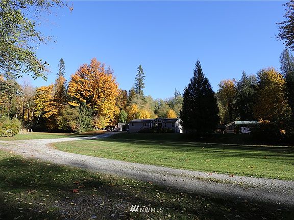 AMAZING opportunity to fish and enjoy the wildlife from your front yard! Situated on over 2 acres along the Skagit River, this 2 bedroom +den, 1.75 bath home is move-in ready. Spacious master suite, separate living & family rooms, vaulted ceilings, cozy gas fireplace, guest suite at the opposite end. Entertainment size deck with 5' deep pool, full outdoor kitchen w/covered firepit. Covered RV parking w/ full hook ups, additional RV hook ups down by the river. Plenty of room for everyone.