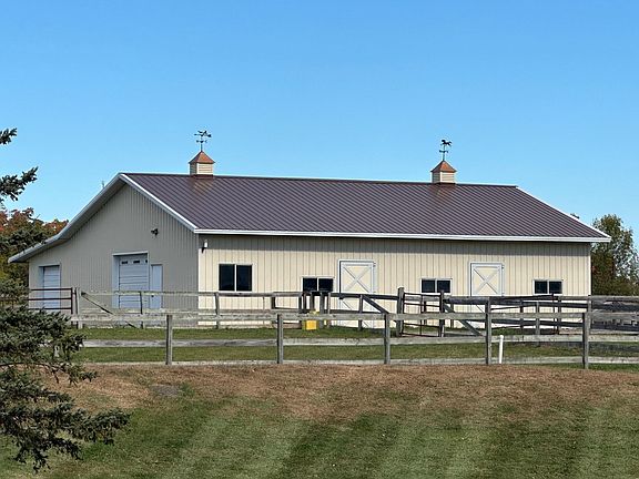 10 private acres set up for horses! 4 bedroom, 4 bath walkout rambler with all living facilities on one level. 38x48 barn with 5 box stalls plus lean-to. Outdoor arena, separate pastures wooden fencing. Sold before print.