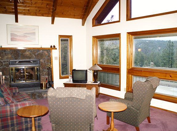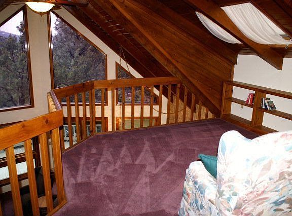 Incredible views of the Mogollon Rim. This is a well-maintained house ready for your enjoyment. Enter thru lower level or main level. Two levels of decks with outside patio area. Wood buring fireplace in living room. Two bedrooms on the main level and one full bath. The lower level features a large family/recreational room, half bath, washer dryer and a wood burning stove. The master plus a sitting room is on the uper level. Furnished! Has central heating and air conditioning.