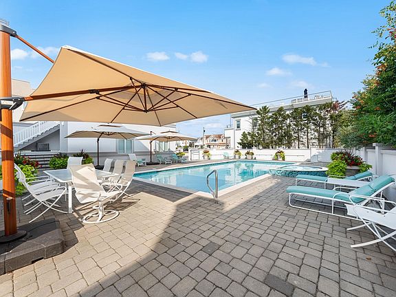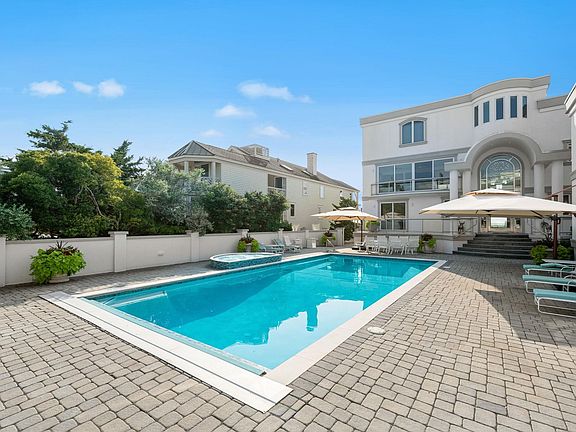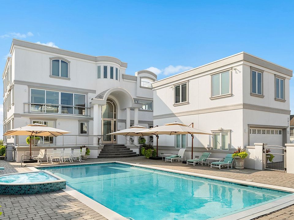 This unique and expansive bay front home in the south end of Avalon, with unobstructed sunset and bay views, and only one block to an incredible beach, sits in its own class altogether. The estate is designed on an oversized 75Ft by 154Ft+ parcel. Featuring 6 bedrooms, 7 full bathrooms and 2 powder rooms with 6,380Sq Ft of conditioned living space, and one of the island’s largest pools, measuring 20Ft x 40Ft long. Perhaps one of the most unique amenities to this estate is the detached guest house with a TV room, bedroom, full bathroom and kitchenette. Alongside the expansive pool area sits a full bathroom and laundry area. The main house features 5 bedrooms, 5 full bathrooms and 2 powder rooms. The nautical architecture, featuring cable railing, stainless steel posts and beams can be found inside and out, with water views as the backdrop. The custom craftmanship cannot be overlooked in any detail of this home, starting with the extensive trim package, composed of American cherry, back stained and biscuit jointed from Rhoads & Rhoads. The doors are solid core, with American Cherry clad on all sides and a lacquer finish, making them completely soundproof, with ball bearing hinges for smooth maneuvering. Brazilian cherry wood floors run throughout, with Spanish marble in the entryway on the first floor. A hydronic floor heating system with 14 zones keeps this entire home, with all custom woodwork, bone dry with no separation between joints. The instant hot water system for the entire estate is also powered by a large boiler. The first-floor features 3 spacious bedrooms with ensuite bathrooms, a powder room and bay side family room with beverage drawers. Through a set of sliders, the first-floor deck spans the entire width of the home. A laundry room finishes off this floor. Ascending up the free-standing American cherry stair system to the second level, 180-degree water views North, South and West greet you from inside the home due to the substantial amount of custom glass and windows overlooking the bay. High vaulted ceilings throughout the kitchen, dining and family room area allow for an abundance of natural light. The chef’s kitchen features a substantial Sub-Zero appliance package of 4 beverage drawers, a large refrigerator, and wine refrigerator. 2 Viking ranges and 2 Miele dishwashers flank the center island. Custom Eucalyptus cabinetry finishes off the kitchen, which seamlessly flows right into the family room anchored by a ventless gas fed fireplace. Through a set of lift and slide doors, the spacious second-floor bayside deck is split between a covered area for dining and sunbathing with chaise lounges. Back inside, the fourth bedroom with ensuite bathroom and a powder room finish off the second floor. Upstairs, the primary suite has a wall of doors that can easily retract to allow for mesmerizing water views and an open-air concept. A large 80inch TV is custom mounted on a stainless steel swingarm which enables you to watch TV from your bed, then easily tuck it away when not in use, further enhancing water views. The master bathroom features two large vanities, a jetted tub, gorgeous, tiled shower, as well as the thoughtful placement of an outdoor shower. A large walk-in closet is conveniently tucked away off the bathroom. The third-floor deck is the perfect place to enjoy a morning coffee and book. Another unique feature of this property is the largest rooftop deck on the entire island, spanning over 1,000 Sq Ft. This allows for Ocean and Bay views for as far as the eye can see. A cabana with refrigerator and sink enables entertaining on this rooftop where everyone will be during the 4th of July fireworks. This deck is wired and plumbed for a hot tub with reinforced beams should the next owner want to place a hot tub here. The docking system is wired for 50amp service for larger boats to be powered.
