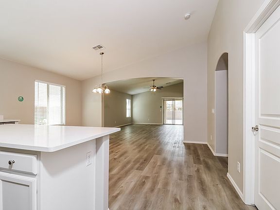 Please note, our homes are available on a first-come, first-serve basis and are not reserved until the lease is signed by all applicants and security deposits are collected. This home features Progress Smart Home - Progress Residential's smart home app, which allows you to control the home securely from any of your devices. Apply to lease this home by November 30, 2024 and receive $1500 off your first full month's rent. Want to tour on your own? Click the "Self Tour" button on this home's RentProgress. This Buckeye, AZ rental home includes a private enclosed yard as well as a renovated interior with four bedrooms and two bathrooms. A spacious living room with neutral gray walls and wood-look flooring welcomes you inside. Follow the pretty arched doorway to find the kitchen, which has all-white cabinetry, matching quartz countertops, and a full set of stainless steel appliances. A big center island helps to maximize prep space. The extra-high ceiling in the main bedroom lends an open and airy feel, and you'll love having a large walk-in closet and private bathroom with both a shower and a bathtub. Be sure to check out the covered back patio outside. Book your in-person tour today!