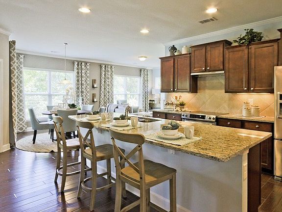- Kitchen Features: Cabinets White, Breakfast Bar, Cabinets Stain, Eat-in Kitchen, Stone Counters, View to Family Room, Kitchen Island, Pantry Walk-in