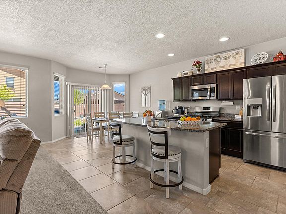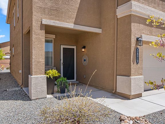 Welcome to your beautiful 2018 DR Horton home in Rio Rancho! This stunning 2-story house boasts 4 bedrooms and 2 living areas (or a potential 5th bedroom). The open floorplan on the main level features a spacious living room, dining room, and kitchen. Upstairs, all bedrooms and the laundry room are conveniently located for privacy and comfort. The backyard is fully landscaped and ready for outdoor entertaining or relaxation. You will love the elegant foyer entrance and two refrigerated air-conditioner units, providing separate cooling for the upstairs and downstairs areas. The finished garage provides ample storage space for your vehicles and belongings. Located in a quiet neighborhood, this home is perfect for those seeking a peaceful lifestyle. Don't miss out on this dream home!