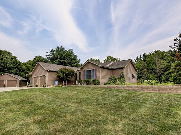 Stunning 3 acres of landscaped grounds & perfect home for the family that wants to surrender to the country! Just minutes from Decatur, this home has everything you could want. Plenty of storage in the unfinished portion of the walk out Lower level, 3 car attached garage and bonus 2 car detached garage. Vaulted ceilings, gorgeous hardwoods, beautiful stone fireplaces, Granite tops & so much more await you here! Custom built with all the modern conveniences your busy family needs. HUGE rec space and family room in the walk out finished basement. Covered patio, gorgeous landscaping, updated kitchen & bathrooms! Brand New private deck off main floor dining area overlooks the wooded tree line and is the perfect place to relax with family or entertain guests. Rare opportunity for you to take advantage of this Country gem! Will not last long!!