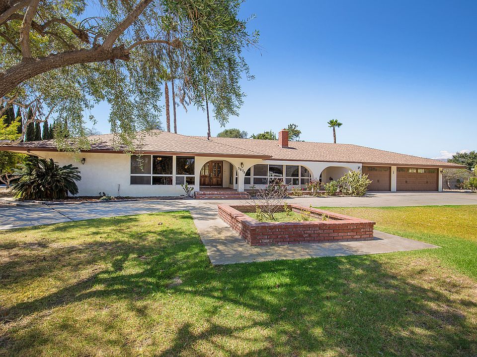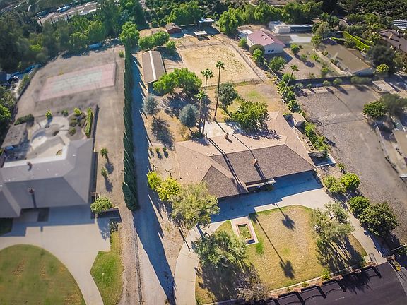 Sprawling single story ranch home located on over 2 acres of land. Horse Facilities include large 100ftX80ft arena with sprinklers, 5 stall barn(with water and electricity), tack room, 4 corrals, hay barn, all heavy duty oil rig pipe fencing. The house boasts over 3500 sq ft 4 bedrooms 3 bathrooms 4 car garage,large U-shaped driveway, inviting front porch, new interior paint, smooth ceilings, updated kitchen with granite counters, large pantry, stainless steel appliances, including gas cook-top and convection oven. Additionally there is a oversized bonus room plus 3 Remodeled bathrooms, Large master suite with walk-in closet sitting area and large renovated on-suite bathrooom plus 3 additional bedrooms. Other upgrades include 2 year old multi-zone HVAC system, 2 year old roof, 2 tank-less gas water heaters, 9 zone lawn sprinklers and landscape irrigation with new pump (all ag water), several fruit/avocado trees.
