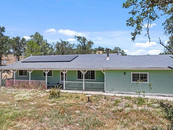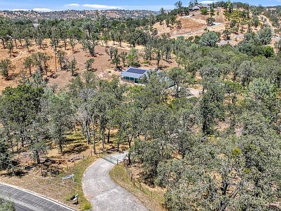You could own this little slice of heaven at the base of the Sierra foothills on 3.09 private acres on a very quiet street. The property is fenced/cross fenced, has a seasonal runoff, loaded with oak trees and perfect for small or large animals. The home is as cute as it can be with a covered front porch and uncovered back patio. Both bathrooms have been remodeled with the primary bath featuring a roll in shower. Vaulted ceiling in the living room with woodstove on raised rock hearth making for very cozy winter nights. The kitchen features an abundance of cabinetry, island and updated appliances. Newer French doors installed in the primary bedroom and dining area. Grow your own vegetables in the raised garden beds, raise chickens in the existing coop for fresh eggs and store animal hay/feed in the large shed. Country life close to an award-winning golf course, three beautiful lakes and below the snowline what more could you ask for.