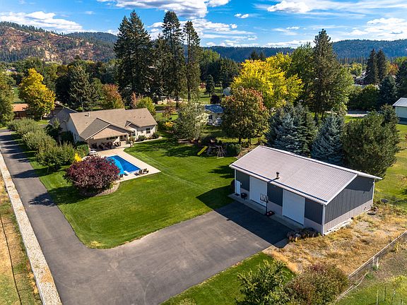Immaculate Dalton Gardens rancher offers 4488SF, 5BEDS/3.5BATHS with open kitchen and living, formal dining, full basement with 9' ceilings, open family room, wet bar and built-ins. 31'x16' covered back patio, plus awning to enjoy the 20'x40' heated in-ground pool and fully landscaped, fenced, and sprinklered .94 acre lot. Huge 36x50 heated shop with bathroom, asphalt driveway, fruit trees and more! This home has it all! New furnace, heat pump, hot water heater, and too many other amenities to list.