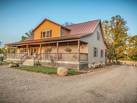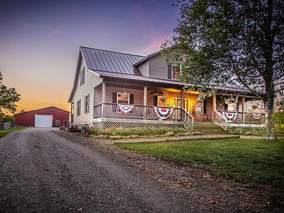 An Exquisite Country Home, on this 22+ acre farm South of town. This home features 5+ bedrooms, 3 baths, a gorgeous hickory cabinet filled kitchen w/stainless steel appliances, an island/breakfast bar, beautiful hickory hardwood floors throughout, Italian tile, 1st floor master suite, 3 bedrooms, 1 bath, a sitting area on the second floor. Enjoy the country setting on either the front or back covered porches. Additional features include a mother-in-law suite with full kitchen, living room, family room w/private entrance. 90x46 pole barn, approx 10 acres fenced in pastures and 12 acres wooded all located on St Rt 13 with easy access to St Rt 62 for quick commute to Newark and Columbus
