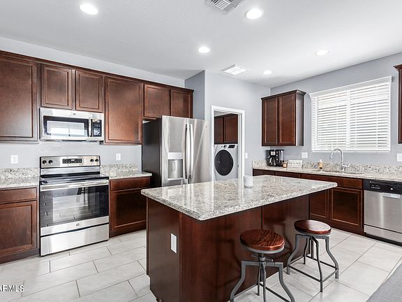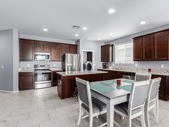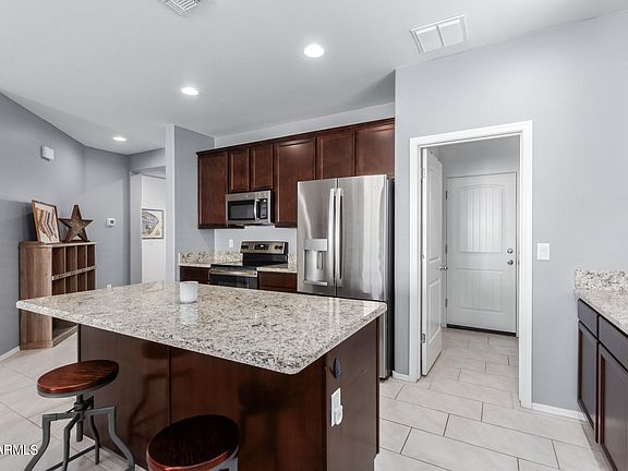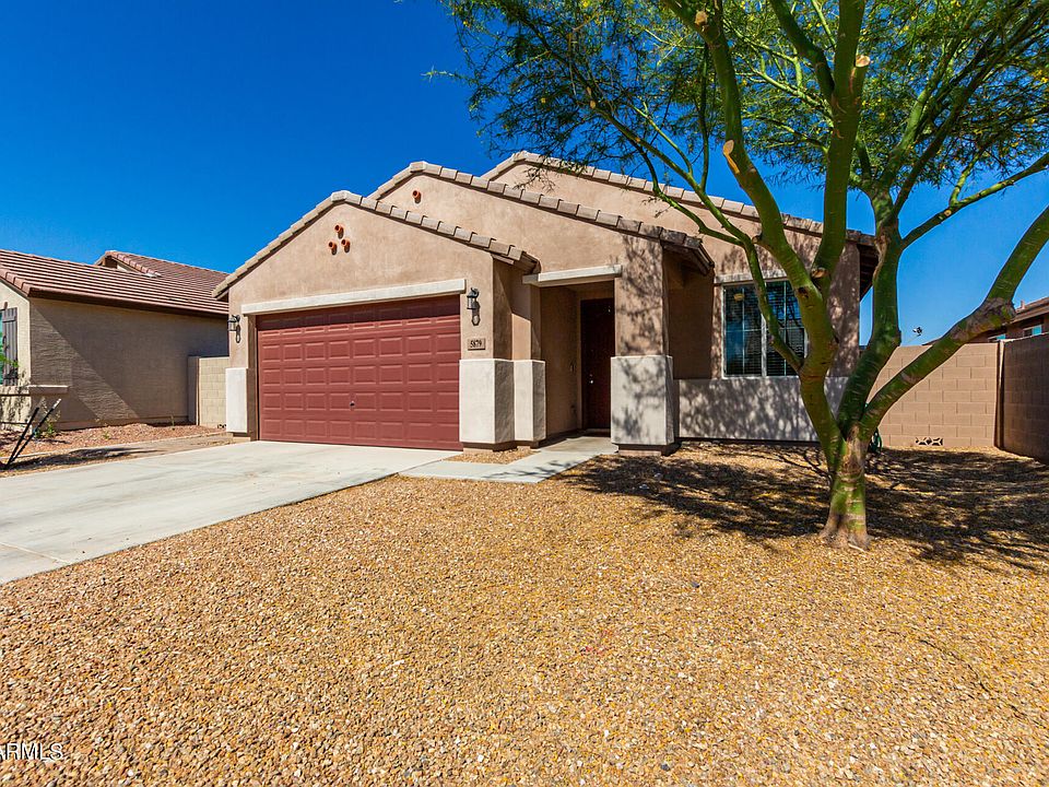 Best deal in Buckeye! Easy access to shopping, restaurants, parks, and entertainment in the growing city. Enjoy the sunrise with a cup of coffee on your covered patio, host your friends for a shaded evening in the low-maintenance backyard and spacious great room. This split floor plan 3 bed, 2 bath home has 2 walk-in closets in the master en suite as well as a separate shower and luxurious soaking tub. The kitchen is complete with upgraded finishes and plenty of space on the granite countertops for all your culinary creations. See it today before its gone!!