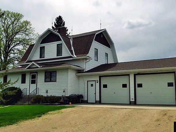 View this well-manicured 5-acre farm site, with an option of 5 extra acres for $50,000 to make it 10 acres if desired. Enjoy original hardwood flooring, wood trim, and built-in cabinets. Three upper floor bedrooms and a 4th on main level which presently is used as an office area, 3 bathrooms, eat-in kitchen, large dining room & living room, main floor laundry and lower level family area. The basement recently had installed, a complete tiling system around entire area with guarantee to transfer to the buyers. Insulated, extended triple garage. Two patio areas to see both sunrises and sunsets. Attractive & functional outbuildings: 56’ x 82’ pole shed with sliding doors, 40’ x 82’ pole shed and 40’ x 60’ Quonset both with overhead doors, 30’ x 32’ freshly painted granary plus many working bins. Shed and bins presently rented out. Magnificent lawn, trees and landscaping, harvest delicious fruit with a cherry, two apple, and two pear trees.