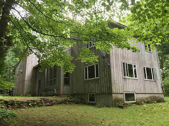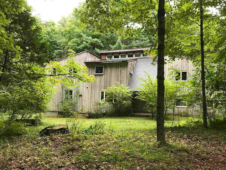 Nestled in the trees on 39 acres, just minutes from the village, this custom contemporary with a brand-new roof is bright and airy, with a semi-open floor plan. Each room is spacious, with large windows integrating the interior with the natural setting. The living room has a cathedral ceiling, with natural woodwork, open beams, and a fieldstone fireplace that rises to the ceiling. Adjacent dining room, kitchen/gathering room with fireplace insert, and half bath complete this floor, all with hardwood floors. Upstairs, the hallway overlooks the lower level, with four large bedrooms (one with ensuite bath), and a shared full bath. The basement is dry and offers storage or rec/hobby space. Two-car garage, many updated windows, and mechanicals. Taxes listed do not reflect the STAR exemption.