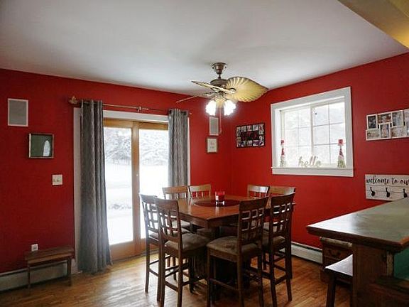 "HOME HAPPENS HERE"Cozy 3 bedroom home situated on 6.9 acres with detached barn and 2 car garage with workshop!! Home boasts modern eat-in kitchen with glass doors leading to rear deck that overlooks a trickling stream, barn and acreage! Spacious living room with fireplace, formal dining room, modern full bath, two abundant sized bedrooms all with original hardwood or ceramic tile floors complete the first level. Second level boasts third bedroom with on-suite bonus room! Full dry basement houses laundry area and offers plenty of storage! Call to schedule your private tour today!!!