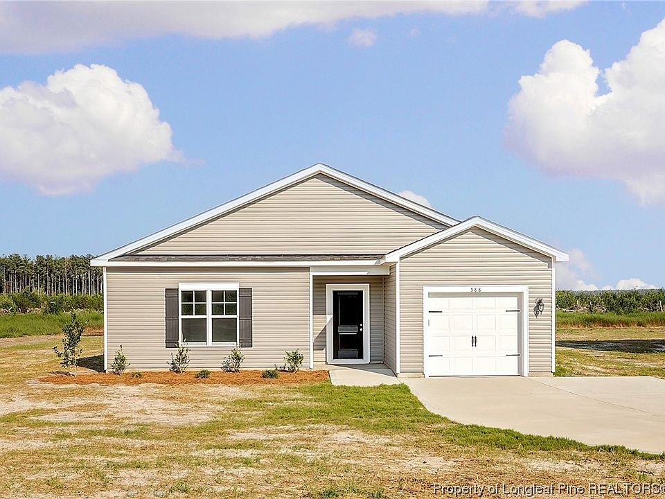 Buyer incentives include 2.5% in seller paid closing costs and blinds to be installed before closing with an acceptable offer!! The Pamlico Floor Plan is a spacious ranch home. It boasts 3 bedrooms and 2 bathrooms and a single car garage. The owners suite includes double vanities, quartz countertops, chrome plumbing fixtures, large shower, and walk-in closet. The kitchen includes stainless steel appliances (range, microwave, and dishwasher), granite countertops, large island, and tile backsplash. LVP flooring runs throughout the foyer, family room, kitchen, with vinyl in bathrooms and laundry and carpet in bedrooms. There is two additional bedrooms, secondary bathroom, boot bench, and laundry room. Featuring 2-10 homebuyer 's warranty, TRANE® HVAC system, energy efficient 50-gallon electric water heater, 30 year architectural shingles, low maintenance vinyl siding, aluminum gutters the front and rear, Sentricon® Termite Colony Elimination System, wireless security system, and more!