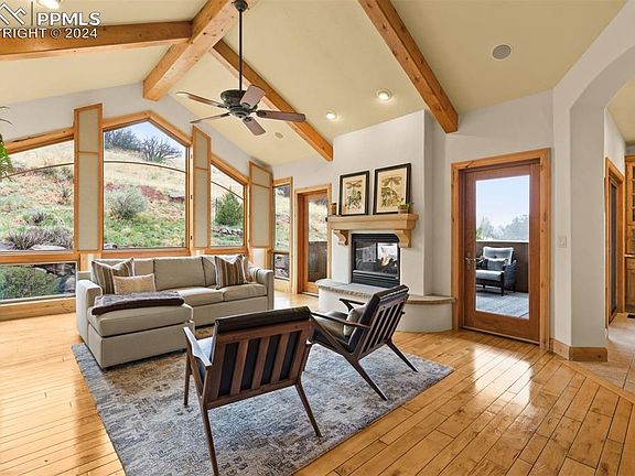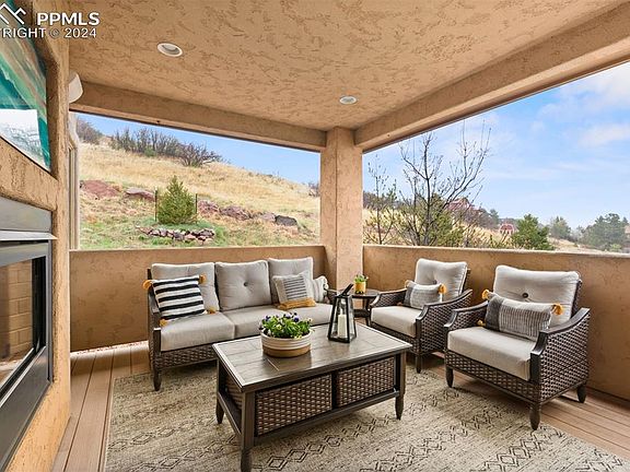 Welcome home to this charming enclave where the street names are lyrical, the wildlife abundant & nearby amenities are pedestrian friendly. Greeted by a front courtyard entry & into the great room boasting an inviting fireplace & elegant wood floors. Combined w/ the natural light & view of the green space, they create a welcoming atmosphere for gatherings & relaxation. The heart of this home is its gourmet kitchen, featuring granite countertops, farm sink & a spacious island for culinary adventures. Equipped w/ a 48" refrigerator, double oven, & trash compactor, this kitchen is a chef's delight. A pantry ensures ample storage for all your culinary essentials. From the main level, step onto the covered composite deck & be greeted by the warmth of a double-sided fireplace, perfect for cozy evenings spent under the stars, true Colorado living. Retreat to the primary bedroom, where sliding doors lead out to a private back patio complete w/ a soothing hot tub. The updated 3/4 bath offers a spa-like experience, while a closet organization system keeps your wardrobe tidy & accessible. Find an additional bedroom w/ built-in versatile desk plus full bath on the main level. Throughout the home, you'll find exquisite details such as alder wood doors, cabinetry, & trim, adding warmth to every room. Hand-textured walls adorned w/ neutral paint create a serene backdrop for your personal style. Your garden-level basement features tall ceilings & a walk-up wet bar w/ a refrigerator. Two additional bedrooms & full bath provide comfort for guests, while a large recreation room & additional flex space offer endless possibilities for relaxation & recreation. In the basement, unfinished storage space ensures plenty of room for your belongings. This home is equipped w/ modern conveniences in mind, & has recently seen thoughtful updates including new Pella windows on the west side, new interior paint & lighting, a primary bath refresh & a sound system throughout.