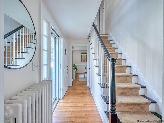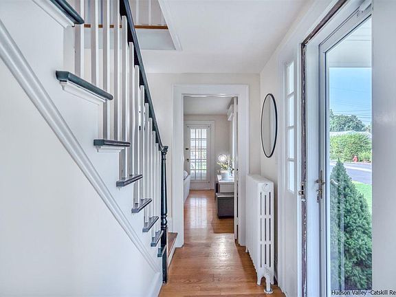 HIGHEST AND BEST due August 4th at 12 noon. This charming home located in the Roosevelt Park area of Kingston is just minutes to Historic Uptown Kingston and has so many nice details along with some great recent updates including a half bath, an updated full bath, several new appliances and a beautiful bluestone patio. The special original details that make this home stand out include a gorgeous banister running along the entry foyer, built-ins, original brass doorknobs, radiators, hardwood floors and solid wood paneled doors. The living room with a beamed ceiling has a nice cozy feel with a wood burning fireplace. A formal dining room gives you plenty of room for guests and the bright white kitchen has access to a perfect sized fenced backyard for gardening or just relaxing on the patio. The glassed porch off of the living room is another quiet spot and has a slider to the backyard as well. This home located on a low traveled quiet street also has a golf course around the corner and a park across the neighborhood with tennis courts and a picnic area. Great for walking and biking as well. Just 2 hours out of NYC, Kingston is on the map with wonderful shops and restaurants, bike lanes, rail trails, weekly farmers markets, a downtown waterfront and a cool newly designed midtown corridor with a performing arts center.