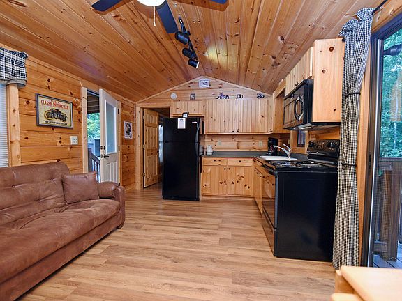 FULLY FURNISHED Tiny Log Cabin Situated on Babbling Stream!! Amazing Screened Porch to Enjoy the Outside and Overlook the Private Backyard and Branch! Motorcycle Garage, Paved, GENTLE Access Leading to the Cabin! One Bedroom, One Bath. Solid Log, Open Park Model in Pristine Condition! Hardwood Floors. Queen Master Bedroom with Vanity Sink. Plenty of Room to Entertain On the Screened Porch + TV & Grill! Open Back Deck for BBQ'n. Blairsville's BEST Mountain Get-Away! Only $800 Annual HOA Fee & Annual Property Taxes $674.60. Copperhead Lodge is a Premier Vacation Destination with On Site Restaurant "The Flying Trout" with Bar, Salt-Water Pool, Community Pavillion/Stage for Live Music... This 40 Acre Community Has it ALL! FIBER Internet $20/mo & Notla Water $20/mo. 131 Rented Nights & Avg to Seller NET $6,400, would rent more but seller used cabin. Close to Lake Nottley!