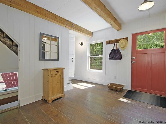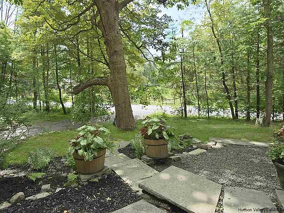c.1850 Treasure Magnificently Restored and Updated to Perfection. This inviting classic farmhouse is filled with historic period detail and yet perfectly melds itself with a crisp modern aesthetic. Full energy retro-fit. A bright appealing living area with beamed ceilings and wideboard floors is perfectly designed for entertaining, gatherings or quiet evenings. Lovely wainscoted entry with half bath. Stunning kitchen with quartz counters and butcher block island perfectly blends beauty with function. Living Room with glass doors leads to patio and on to over 14 acres of sun dappled woodland with hand laid stone walls. Just beyond the stone walls is private and level acreage lending itself to guest house, pool, studio or potential subdivision. Very private and spacious MBR suite, with own entrance, separate office and sitting areas has radiant floor heat. Cathedral Ceiling Library with expansive property views and charming window seat reading nooks. Two Beamed Ceiling Guest bedrooms with beautifully tiled bath. Special property with appealing gardens, stone walkways and delightful stone grotto patio. It is rare to find a property with such history and detail intact and yet bringing it to such a level of modern convenience.