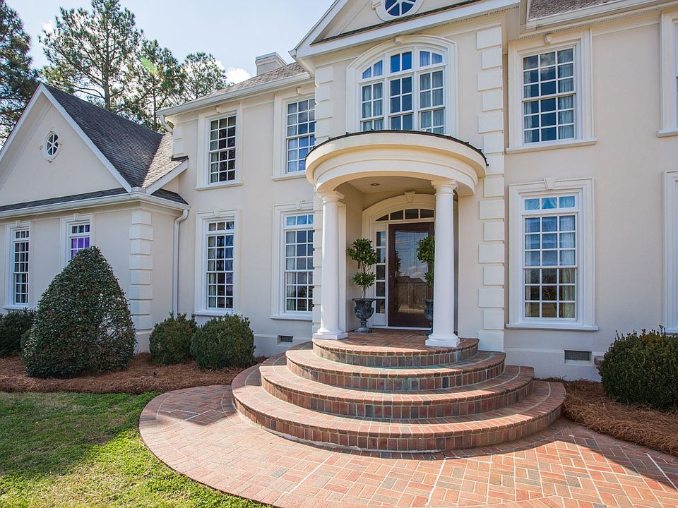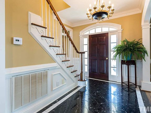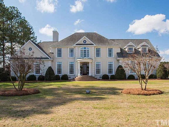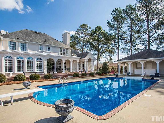 Convenient to I-40 & I-95. Gorgeous home w/Extensive crown, chair rail, & wainscoting throughout. Granite counter tops, SS microwave & Thermador wall oven/black glass cook top. Desk area. Marble surround gas log fireplace in FR. 1st Flr Master w/2 WICs & Trey ceilings. Mstr. Bath has marble flrs, & jetted tub/sep shower. Bonus w/wet bar. 2 Staircases. 3rd Flr. unfinished storage space. In ground salt water pool, outdoor bar, diving board, brick patios, pergola, & pool house with addt'l full bath!