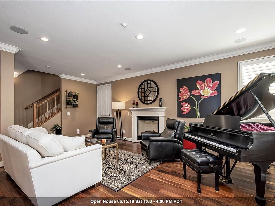 Lovely home shows like a model with many upgrades. This 3 bedroom home has a spacious master retreat that was originally a 4th bedroom. Master bath has stone slab shower and counters. The 3rd bedroom can be used as a junior master suite/loft. Granite counters in kitchen and stainless steel Thermador appliances with built-in refrigerator and wine fridge. Walnut hardwood flooring on main level. Powder room and laundry room on main level. All bedroom closets have built-in closet systems. Crown Molding, Plantation Shutters, LED can lighting, newer tankless water heater, 2-car finished garage with storage. Wireless alarm system. Community Pool, Clubhouse, Gym, and playground. OPEN HOUSE SAT 1-4 PM