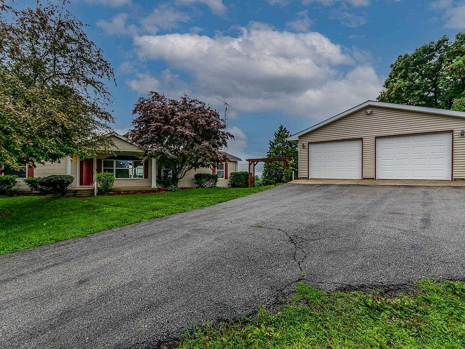 The views from this home are unbeatable! A true country get away, this property sits on seven acres of combined pasture and woods. The wooded area has trails for hiking and recreational vehicles. The home has an open floor plan, three newly carpeted bedrooms, and new plank flooring throughout the rest of the home. Adding to the owners comfort, this home has both a garden tub and fireplace. Two decks and front porch extend the living space, - along with a two car garage and shed. Washer, Dryer, Refrigerator and Dishwasher stay with the house.
