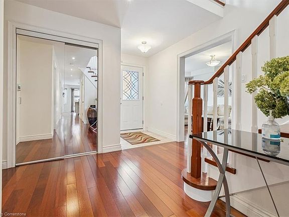 Stunning 4-Bedroom Home with In-Law Suite and Exceptional Upgrades. This immaculate 4-bedroom home offers a perfect blend of modern luxury and functional living, featuring a fully self-contained in-law suite with a private entrance. Recent upgrades include: Upper-Level Bathroom Vanities (2024), Smart Security System with doorbell camera & motion sensors (2024), Roof (2023), Furnace, (2022), Complete Kitchen Renovation (2018), Family Room Enhancements (2018), Newer Energy Efficient Windows (2017), Exotic Brazilian Jatoba Hardwood Flooring throughout (2017). The home is set on a beautifully landscaped lot, featuring a charming front yard with evergreen shrubs and a masonry stone driveway. Step into the spacious living and dining area, showcasing a large bay window that floods the space with natural light. The modern kitchen boasts ceiling height solid wood cabinetry with soft-close doors, a generous center island with deep cupboards, drawers, 2 USB charging ports and power outlets, quartz countertops, and direct access to the stunning backyard with a patio—ideal for entertaining. The inviting family room offers a contemporary electric fireplace and exquisite flooring, creating a warm, welcoming atmosphere. On this level, you’ll also find a versatile den/office and a convenient laundry room. Upstairs, you'll find 4 spacious bedrooms and 2 bathrooms. The primary suite features a walk-in closet and a spa-like ensuite, complete with a soaker tub and stand-up shower, offering a tranquil retreat. The finished basement is an added bonus, offering two entrances from the main floor, a 3-piece bathroom, a bonus room (which could easily be converted into two additional bedrooms), and a cold storage room. This home is ideally located close to shopping, parks, public transit, the hospital, and all essential amenities. Walking distance to both public and catholic elementary and catholic high school. Don’t miss out on this exceptional property—schedule a viewing today!