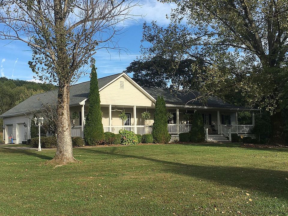 This home is a ranch-style home located on 2+/- acres. The home features two porches, a patio, a pool and deck, and a balcony. The home has 3 bedrooms, 2 bathrooms, and a bonus room over the garage. The kitchen and dining room are open with French doors that lead to the back, screened-in porch. The utility room, pantry, and mud room are joined and accessible from the garage entrance into the house. From the mud room, you can step down into the master bedroom or into the kitchen/dining room. The living room is accessible from the kitchen and leads down a hallway into the other two bedrooms as well as the other bathroom. Each bedroom features large closets. The home has a new roof/shingles (two years old). The HVAC unit is 5-6 years old. Included is a rustic, log cabin-type garden shed with space to park and store yard equipment and tools. The shed has a porch for relaxing after a day of yard work.