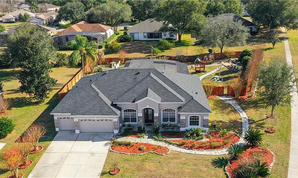 OMG! The size of this yard is amazing! 200 feet deep by 167 feet wide! WELL OVER 1/2 ACRE AT .60 CORNER LOT! Fabulous Rock Springs POOL Home with 2020 ARCHITECTURAL SHINGLE ROOF! 20K ROCK GARDEN WITH ALL PERENIAL PLANTS! Enjoy Custard Apple Trees, Kumquats, Papaya, Grapefruit, Japanese Loquats, Bananas and Persimmon fruit right from your backyard!! Extensive ROCK work throughout the exterior and landscape. 4 Bedrooms, 3 full baths with 3 car garage! Soaring high ceilings with oversized windows and walls of glass bring tons of natural light. Formal living and dining rooms flanked on each side of the entryway foyer and million dollar view of the breath-taking humongous POOL! Enter the family room with arches and architectural details and ceilings that peak around 15 feet tall! Open to the Kitchen with gorgeous exotic granite and newer stainless appliances. A prep island with power and vent hood to the exterior for those who love to cook! A large bar for extra in kitchen seating that offers great views the oversized breakfast nook for great entertaining space for family and friends. The Owner's suite is GINORMOUS! Plenty of space for large bedroom furniture plus seating area. Access to the outdoor patio space and pool. A beautifully remodel master bath with jetted tub! 3-WAY split floorplan! Step onto the patio deck that offers tons of entertaining space! This POOL IS HUGE!! THIS BACKYARD IS HUGE AND FULLY FENCED! FRIENDS, FAMILY AND PETS, PLENTY OF PLAY SPACE FOR ALL! Roof, AC and Water Heater replaced 2020!! Immaculate and move in ready! "A" rated and highly desired WOLF LAKE SCHOOLS! Termite bond & more. RSR is the perfect atmosphere for families of all kinds to come together & live in a true community. A Rated & highly desired WOLF LAKE schools, Field of Fame sports center located just behind the community has football, volleyball, tennis, walking trails and Amphitheater for free weekly concerts! Apopka offers a great environment with terrific and very convenient access from 429 to new Wekiva Expressway to everywhere in Orlando, Lake Mary, and surrounding areas!! Welcome Home!