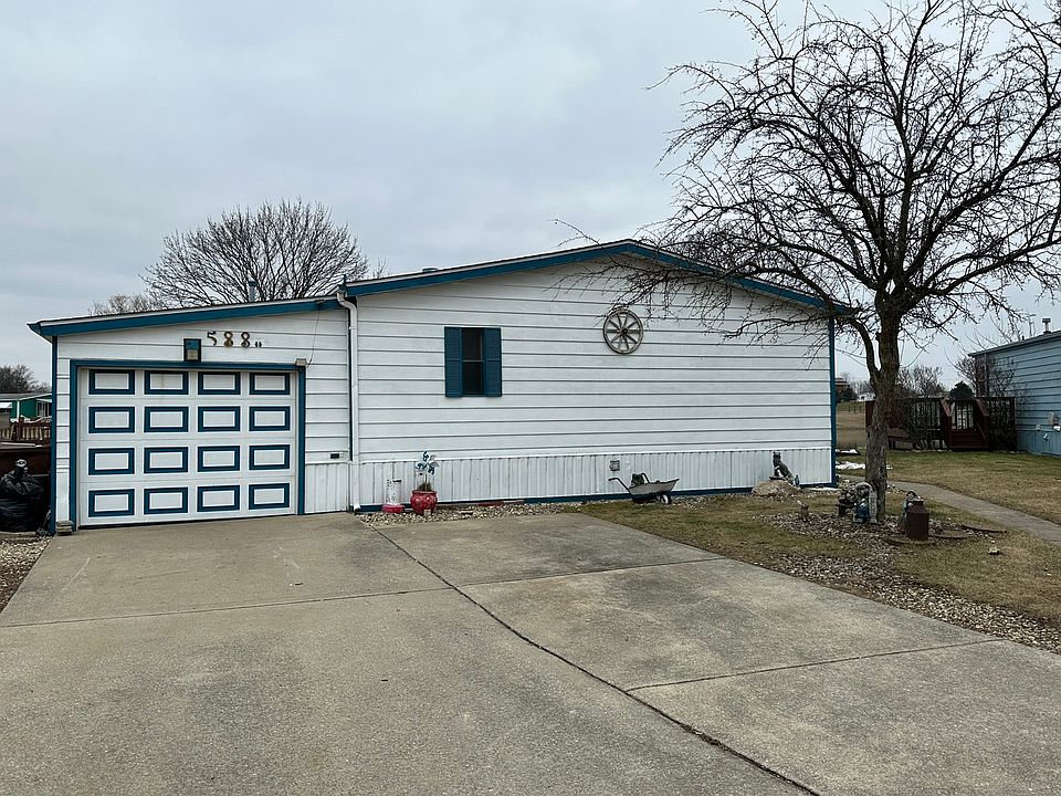 Home located in Timber Ridge all ages community. Home offers 3 bedroom 2 bath, living room and dining area 2 car garage and 2 driveway parking. Shed is also included to add more storage. All appliances stay. New paint, new flooring, come see this home today! Home has 2 decks that look on the pond. Lot lease $720/month. All applicants must be approved by the park (minimum of 625 credit score) to live there. Great Community! Call for an appointment today!