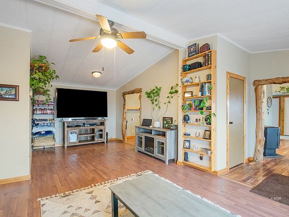 This charming three-bedroom, two-bathroom home exudes warmth and character with its abundant wood features throughout. From the moment you step inside, the natural wood accents create a cozy, rustic atmosphere. The spacious kitchen is a true highlight, featuring modern appliances and ample counter space, all while offering breathtaking views of the surrounding mountains through large windows. The open floor plan allows for seamless flow between the kitchen, living, and dining areas, making it perfect for both everyday living and entertaining. With three comfortable bedrooms and two well-appointed bathrooms, this home offers a peaceful retreat with the beauty of nature right at your doorstep. BONUS: the detached shop has a heated and cooled room in the back. Water heater was replaced when the home was purchased 2 years ago, pellet stove is mainly what is used to heat the home with its 85 lb. hopper. All new decking in the front and back! The security system stays.