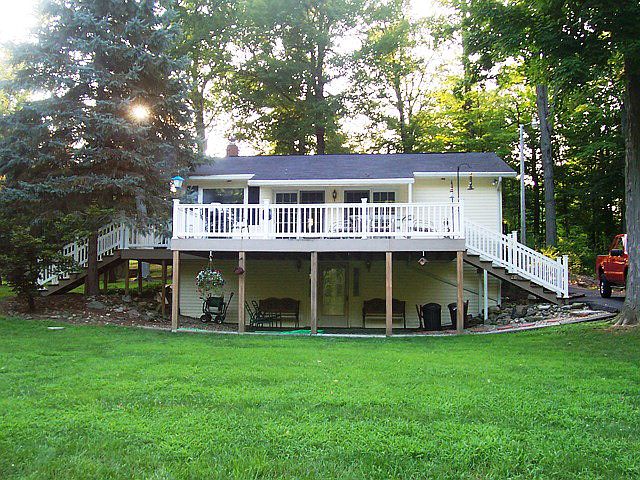 Very nice waterfront lot with flat backyard to water. Built in 1971, this 3 bedroom home has a large deck overlooking the yard and waterfront. Boat lift stays. Full, walkout basemetn with family room, 2nd bath & laundry. One car detached garage with blacktop drive. GFA heat & central air. Septic, rural water. Holiday Lakes privileges, rules & regulations apply.