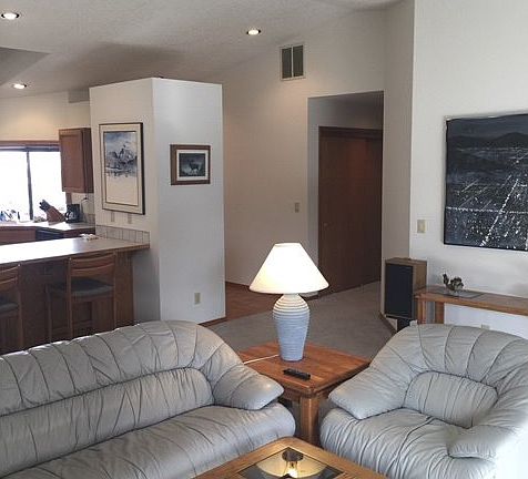 Light and Bright! Skylights throughout. Brick fireplace in the living room is welcoming w/an open floor plan to the kitchen and outdoor covered patio. Gas heat, utility sinks in both garage & laundry. 3 covered patios! This home has been extremely well cared for. Sold as is. Seller will do no repairs!