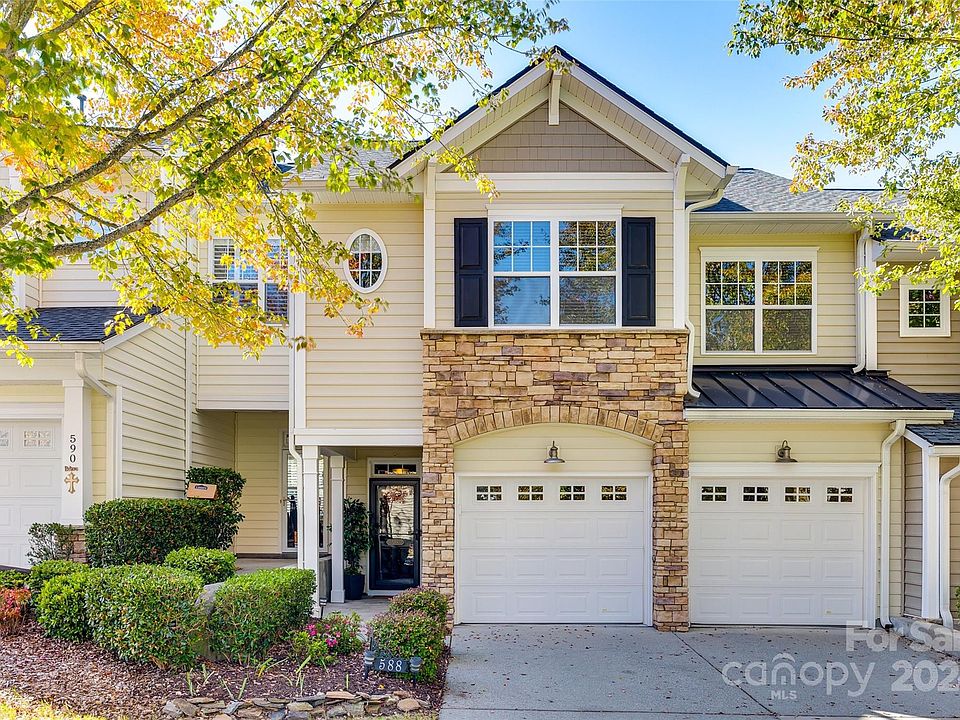 Enjoy the stunning golf course views that this townhome offers. Conveniently located on the coveted Tega Cay peninsula. Well maintained with hardwood floors on the main level and fresh neutral paint throughout. Perfectly laid out kitchen with center island, breakfast bar, granite countertops and stainless appliances plus a spacious dining area overlooking the golf course. Living room features a gas log fireplace and easy access to the rear patio, which is perfect for relaxing after a long day. Upstairs features a serene primary suite with tray ceiling, walk in closet and balcony. Primary bathroom boasts tile floors, a dual sink vanity, private water closet, soaking tub and separate shower. Convenient upstairs laundry room, spacious secondary bedrooms and a loft area. Low maintenance living with a hard to find 2 car garage make this the perfect place to call home!