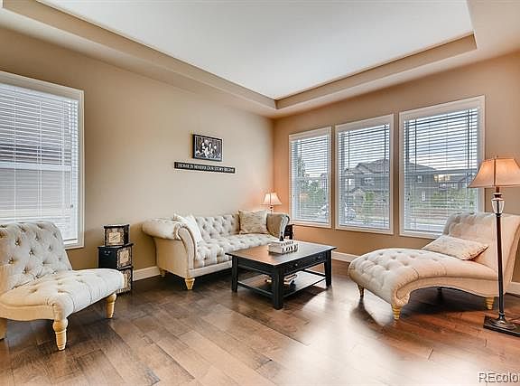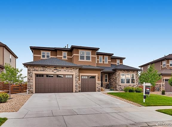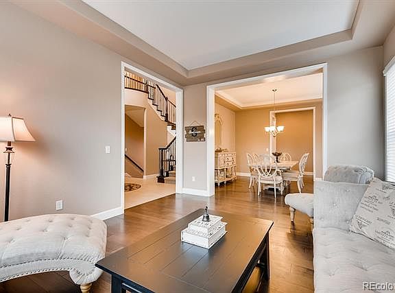 Welcome Home to the best of Colliers Hill! This exquisite Harmon floor plan by Richmond American has a multitude of high end upgrades and design features. This executive-style residence has a two-story entryway, formal parlor sitting room and dining room. The gourmet kitchen includes a beautiful island, upgraded cabinetry, large walk-in kitchen pantry, butler's pantry and tech area. The main level also features a spacious family room, study, laundry area, and mud room. The large master bedroom features a cozy retreat with fireplace and is complimented perfectly with a spa-like master bath. The finished basement is equally well-appointed with a large bonus room, perfect for entertaining, a large bar area, study and an additional bedroom and bath. This superb home is finished off with a professionally landscaped backyard, with mountain views, perfect for enjoying all that is great about Colorado outdoor living. Collier's Hill also features a community pool and clubhouse.