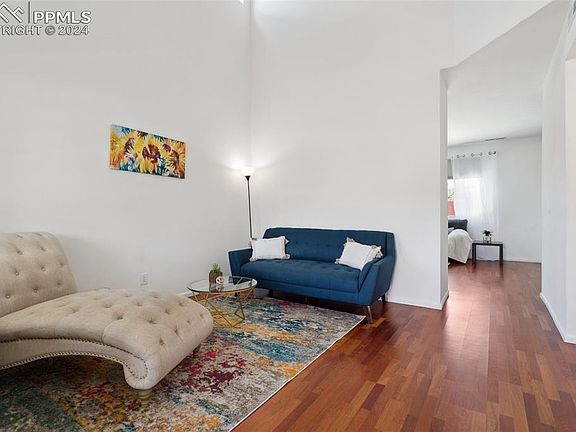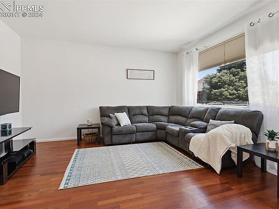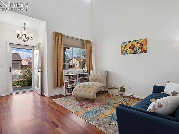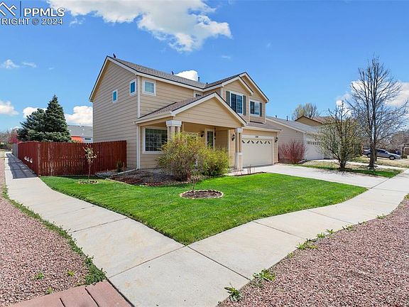 Welcome to this beautiful 4-bedroom, 2.5-bathroom, 2-car garage home conveniently located in the heart of Colorado Springs! As you enter this 2- story floor plan home, you are greeted by a grand entry with plenty of natural light, and gorgeous Brazilian cherry floors and staircase. There is a bonus space right off the entry which can be used as formal dining or a flex space to enjoy. As you venture towards the back of the main level, you'll find the open concept living room, kitchen, and dining area. The kitchen features granite countertops, decorative backsplash, an island, tons of cabinet space, and a nice sized pantry. The kitchen flows out to your covered patio, perfect for entertaining. Walk out of the covered patio to find the large corner lot home with a fenced in backyard with a dog run, well done landscaping, and a shed for all your storage needs. Upstairs there are 4 spacious bedrooms all on the same level, a shared full bath, a huge primary bedroom, featuring a walk-in closet, and a 4-piece bathroom! This home has A/C so you will be sure to stay cool all spring and summer long no matter where you are within the home. The 2-car garage is perfect for your additional storage needs and serves as a great workout space. Located near the Powers Corridor, groceries, shops, and restaurants. Just a short commute to Peterson SFB, and Ft. Carson. Let's not forget to mention this home comes with a Whole House Water Filtration and Conditioning System, New Carpet, Front Door Bell Camera, Washer and Dryer! Be sure to add this one to your list to see!