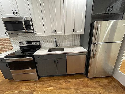 Gorgeous 1 Bed (2 bed flex) w/ PRIVATE BACKYARD available in Bedstuy, short walk from the J/Z train lines. The surrounding area is home to many corner cafes, coffee shops, cool bars, great restaurants, and organic grocery stores! Key features: - VERY Spacious Living Room w/ Glass Doors + Dining area + Exposed Brick *Could turn living room into a 2nd bedroom - Beautiful kitchen with Stainless Steel Appliances + Dishwasher - 1 King Size Bedroom w/ BIG closet + Exposed Brick and LOTS of light - 1 Gorgeous Bathroom w/ Stand Up Shower - High Ceilings & Hardwood Floors throughout - PRIVATE BACKYARD! - Central AC/Heat - Laundry in Building - Storage space available in Basement! Move in = First Month's Rent $2900 + Security Deposit $2900 + Broker's Fee $2900 Contact me today before it's gone!