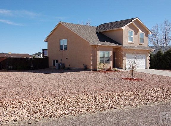 Really nice home on a large lot, perfect for your family. Easy access location just a few blocks off McCulloch, near bike paths, schools and even close to golf course or Lake Pueblo State Park. High ceilings add to the open feeling of this home. Lower level in the process of being finished....very nice layout and will be done by the time you are ready to close. Seller will be happy to explain any finish questions you have. Main level living room looks out over the nicely landscaped, low-care front yard. Upper level kitchen with a bar eating space also has the dining area close to the heart of the home....the kitchen! And the master bedroom with walk-in closet and full bath with double vanities is just steps away. Two of the bedrooms and full bath are slightly elevated above that, and the lower level also has the fourth bedroom and a 3/4 bath. Family room has three different locations for hooking up your TV connections. All the stainless kitchen appliances are included. Wonderful kitchen layout. A newer home in nice condition and a large backyard has a wooden privacy fence (high quality wider fence pickets and non-bending corrugated steel posts), plus small garden area and strawberry patch, plus an elevated deck with mountain views and a ground level patio, perfect for your BBQ. Exterior part of yard is rocked. Ready for as much grass as you want to put in. Nice homes around and a great neighborhood feel....