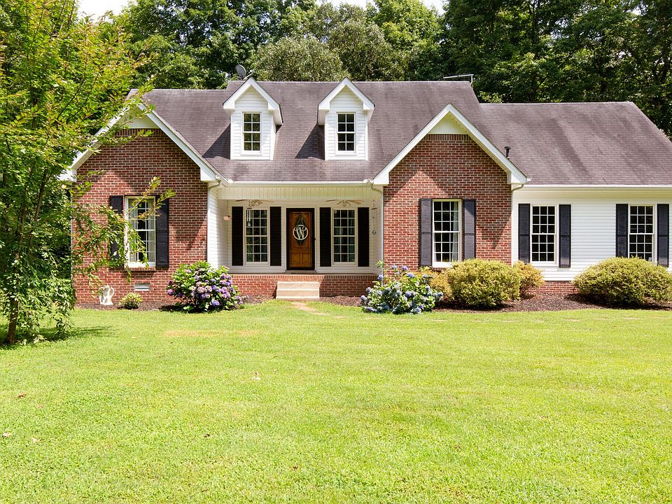 Spacious home nestled back in a wooded lot behind a beautiful entrance with a stocked pond. ** privacy, 4 bedroom, 3 full baths, an office, fireplace in living room that is open to an eat-in kitchen, large bonus room with NEW paint & flooring, central vacuum system, serval storage options, attached garage, a large open faced shed (boat, tractor, etc), an exterior storage shed, lit crawlspace, concrete parking pad, nice patio with table/chairs & natural gas grill, a hot tub, & a stocked pond.