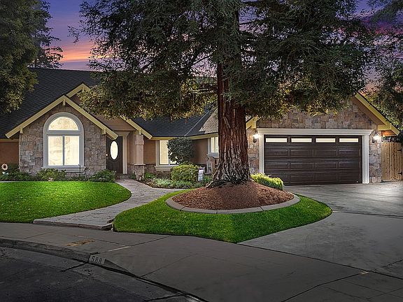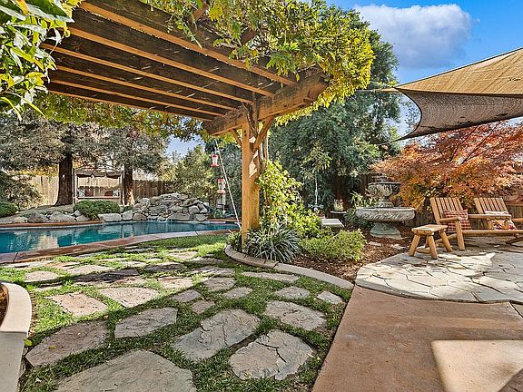 This stunning Clovis home is practically perfect in every way and ready for its new owner! This hidden gem is conveniently nestled in a quiet cut-de-sac and walking distance to Clovis Schools. You will be greeted with soaring vaulted ceilings, lovely French quarter cobblestone tile, and a formal dining room ready for family gatherings. The lovely chefs kitchen features gorgeous granite countertops, tons of cabinet space, nice pantry and skylight, allowing abundant natural light. The kitchen flows to the breakfast nook with built-in sitting and a killer view of the backyard oasis. The cozy living room has a floor to ceiling brick fireplace and staircase which leads you to the loft area and den/office (could also be a 4th bedroom). All 3 bedrooms are downstairs and extremely spacious with nice size closets, with the master en-suite having it's own access to the backyard. The master bathroom has a separate shower and soaking tub. The backyard oasis is perfect for entertaining, featuring: a sparkling swimming pool with lovely rock waterfall, covered patio, awesome beer garden area with BBQ and fireplace, and a long sideyard with planters! The home also features an attic for storage, 50 year presidential comp roof, impeccable landscaping, and a solar PPA with great terms. This home is located close to schools, restaurants, health care, stores and freeway access. Pride of ownership shines in every detail of this home! You better make your appointment today!<br>