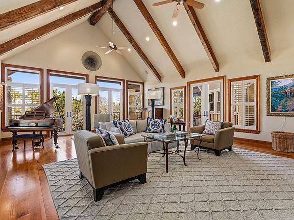 Incredible opportunity to own your own slice of heaven in the hill country! 44 acre ranch with lots of exotic animals running throughout the property. Feast your eyes on this custom built home with vaulted ceilings, custom wood beams, imported doors from Mexico, gorgeous hard wood floors, and lots of interior rock fireplaces with custom wood mantles throughout. The main home has 3 bedrooms, 3 bathrooms and 2 half bathrooms. Custom wood windows, beautifully crafted kitchen area for entertaining and tons of outdoor patio seating. The guest home features 4 bedrooms, an office and porch off the back to sit in a rocking chair and take in the hill top views. Explore all of the canyons throughout the property and enjoy sitting out in the meadow by the spring fed creek of live water! Too many incredible things to say about this property. Come see it to believe it!