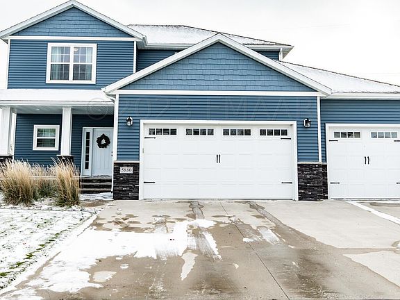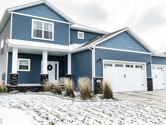 Beautiful 2 story home in the Maple Valley addition of South Fargo situated on a beautiful lot overlooking a pond and close to walking path and parks. Step inside to find a great entry foyer with half bath for all the guests when you entertain in the open concept living, dining and kitchen, Cozy up in the living room with the fireplace and look out at the great fenced in backyard with great landscaping, stamped concrete patio and sensational views. Head upstairs to find 4 bedrooms on the upper level as well as the laundry room. The primary bedroom is large and has a great master bath with separate tub and shower and dual sinks. The basement is decked out with a beautiful fireplace in the family room, has a dedicated office with sliding door and 5th bedroom and 4th bathroom.