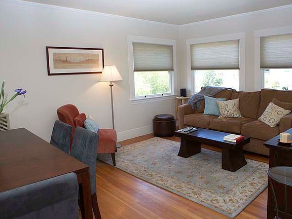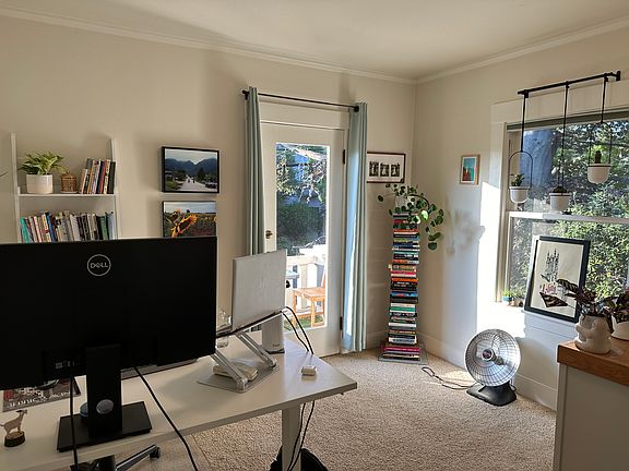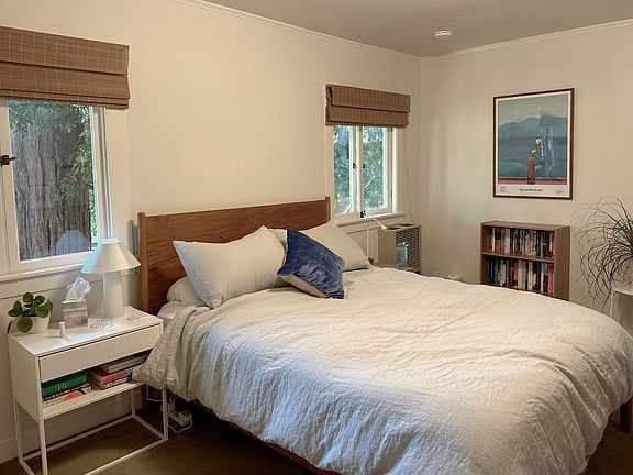 2+ bedroom, 1 bath upstairs flat in Rockridge is available now. The duplex unit was completely refurbished several years ago and has been well cared for since. Bright, tiled retro kitchen with a new refrigerator. Combination living room/dining room with hardwood floors. Primary bedroom has built-in closets with view of redwoods. The adjacent sunroom has built-ins and makes a great home office. The second bedroom is small with access to the upstairs front porch. There is a shared washer and dryer and lots of storage in the basement. Exclusive 3 car tandem parking on driveway with EV charging potential. The large yard is nicely wooded with a deck and is multi leveled. 6kw solar PV solar service which eliminates most electricity costs. Tenant pays metered gas, internet and pro rata water. Owner pays bi-monthly gardener and garbage. Located 1/2 block from College Avenue, close to everything! Great street and very private. Chabot Elementary School. BART, Zachary's Pizza and Trader Joes are all 2 blocks or less away. There is a shared washer and dryer and lots of storage in the basement. Exclusive 3 car tandem parking on driveway with EV charging potential. There is no dishwasher in the unit. The large yard is nicely wooded with a deck and is multi leveled. 6kw solar PV solar service which eliminates most electricity costs (without car charging). Tenant pays net electricity, gas, internet and pro rata share of water bill. Owner pays garbage and bi-monthly gardener.