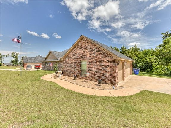 If you are looking for a home in the country, on acreage and with a neighborhood community feel, don't miss this DARLING home! Located in the back of the neighborhood on a dead-end street and a corner/wooded lot you will enjoy peace and quiet and the dark starry nights of country living. There is a 10x16 outbuilding and a portion of the property is fully fenced and heavily wooded behind you. Upgrades include wood-like tile throughout, security system, storm doors, upgraded-tiled master shower, soffit lighting, generator hookup, stainless steel appliances (fridge can stay, just ask!) tons of windows and natural light. ATT fiber is also here! The neighborhood has 4th of July and Halloween events and several other opportunities to be involved in if you would like. Located 2.5 miles to 1-35, restaurants and just down the road from Guthrie Golf & Country Club. This desirable, immaculate and move in ready home is ready for you and can close quick! Truly a beautiful home and lot!