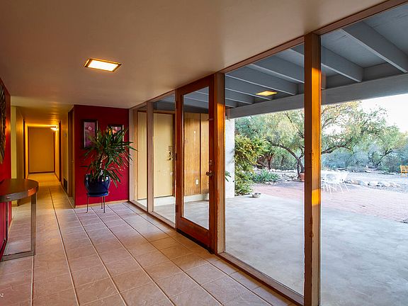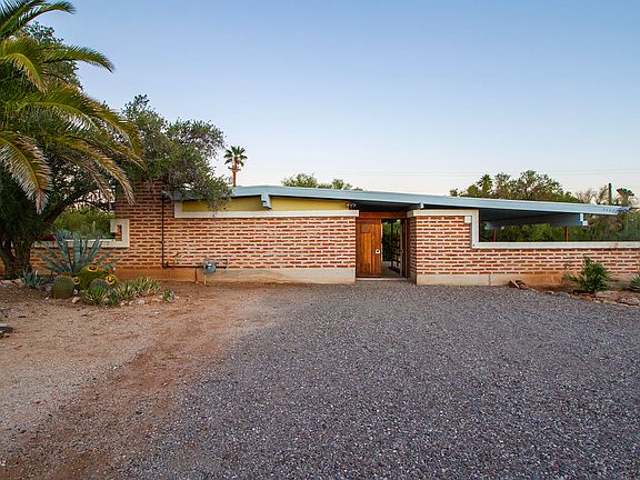 Stunning Midcentury Modern Atomic Ranch by icon Tom Gist. Cat 5 burnt adobe block construction with ribbon windows and walls of glass at zaguan-like entrance and entire North side of home. 3 bedroom 2 baths plus Guest house/studio with full bath n School District 16/Catalina Foothills. Original mahogany carpentry throughout and rare stylish cap blocks atop of the fired adobe bricks, with decorative scroll and flair! Fully enclosed walled backyard with live grass on irrigation next to pool area. Enjoy privacy and classic picturesque views of the Catalina Mountains. Lovingly maintained landscaping, and native desert plants enhance spacious property grounds. Close to shopping, restaurants, hospital and many more amenities. This is a hurry-and-see property!