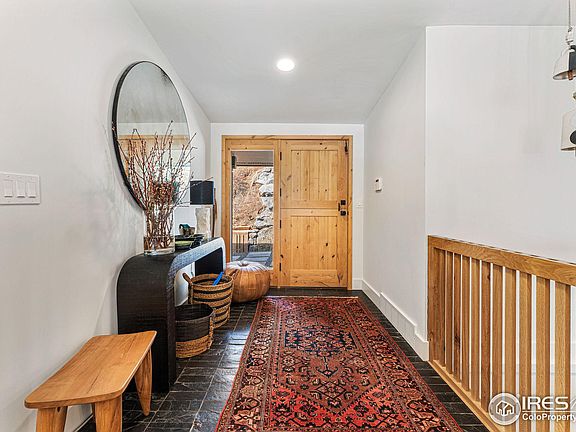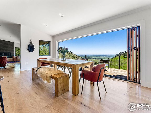 This custom-designed mountain home offers stunning views and easy access to downtown Boulder. It boasts exquisite details such as solid oak wood floors, marbled soapstone counters, custom millwork throughout and a luxurious primary bath featuring beautiful Volakas marble. The kitchen is equipped with top-of-the-line appliances and offers seamless indoor/outdoor living space with breathtaking views. This property is also environmentally conscious, featuring 2 Tesla powerwalls, a solar PV array, and high-efficiency windows produced in the US and rated for high elevation and UV protection. Enjoy the outdoor amenities and extensive landscaping, including a bocce ball court, oversized wrap-around deck, koi pond, hot tub, and outdoor lounge perfect for relaxing or entertaining. This one-of-a-kind home is sure to impress even the most discerning buyer.