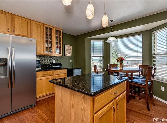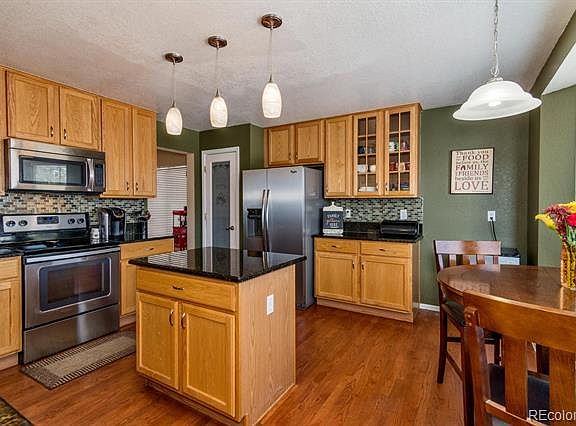 Amazing home in Saddle Rock Ridge. Great kitchen with pantry, stainless steel appliances, island and breakfast bar. Open 2 story family room with fireplace. Private main floor office. Bright living room with bay window. Huge master suite with vaulted ceiling, walk -in closet and vanity area. Five-piece master bath. Two additional bedrooms and full bath complete the upper level. Newly finished basement perfect for entertaining with a rec room, game room, and exercise area. Additional bedroom and 3/4 bath finish off the basement. Big corner lot with fenced backyard. Patio with built-in grill and mini fridge. This home is a must see!